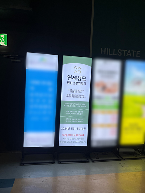 7. 입구로 들어오셔서 엘리베이터를 타고 3층으로 오신 후, 안쪽으로 쭉 들어오시면 연세성모 정신건강의학과의원(306호)에 도착하게 됩니다.